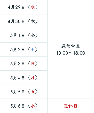 ゴールデンウィークの営業日のご案内